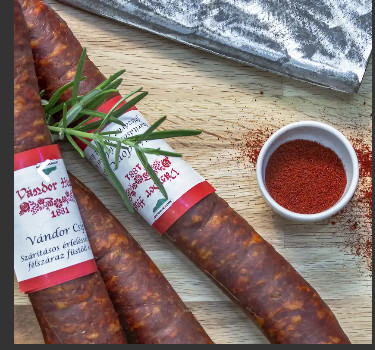 Unsere hausgemachte, scharf gewürzte und geräucherte Paprikawurst wird nach traditioneller ungarischer Rezeptur hergestellt. Aus ausgewähltem Schweinefleisch, hochwertigem Paprika und kräftiger Würzung entsteht ein vollmundiger, würziger und angenehm scharfer Geschmack.