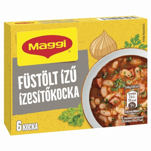 A Maggi füstölt ízű ízesítőkocka egy olyan termék, melyet a füstölt húsok ízének erősítésére vagy helyettesítésére lehet használni ételekben. Főként olyan ételekhez ajánlott, mint babgulyás, lencseleves, lencsefőzelék, lecsó és káposztás fogások. A kocka szárított összetevőkből készül, így nincs szükség tartósítószerekre.
